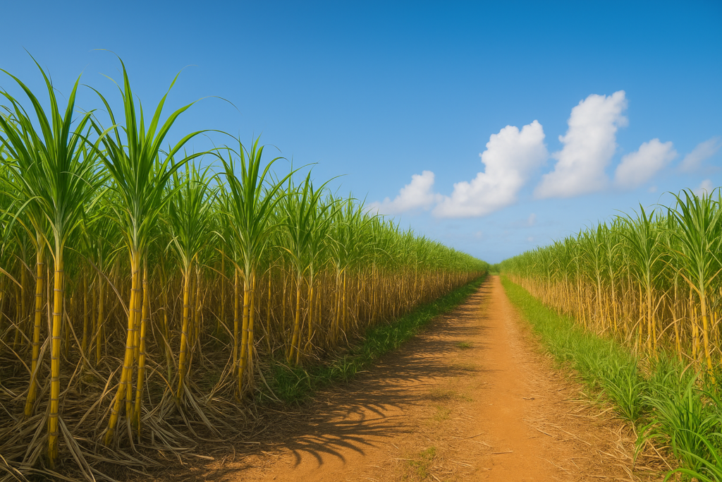 海へ向かう道の途中で、サトウキビ畑が風に揺れ、