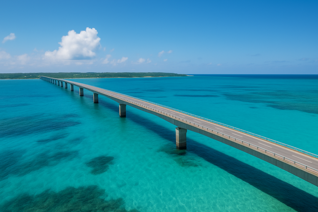 橋を渡れば、海の色が光の角度で静かに変わり、