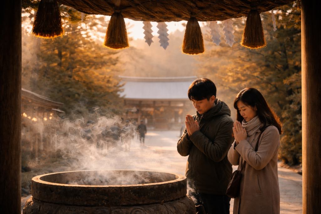 しめ縄の香りに包まれる、年末ならではの参拝体験