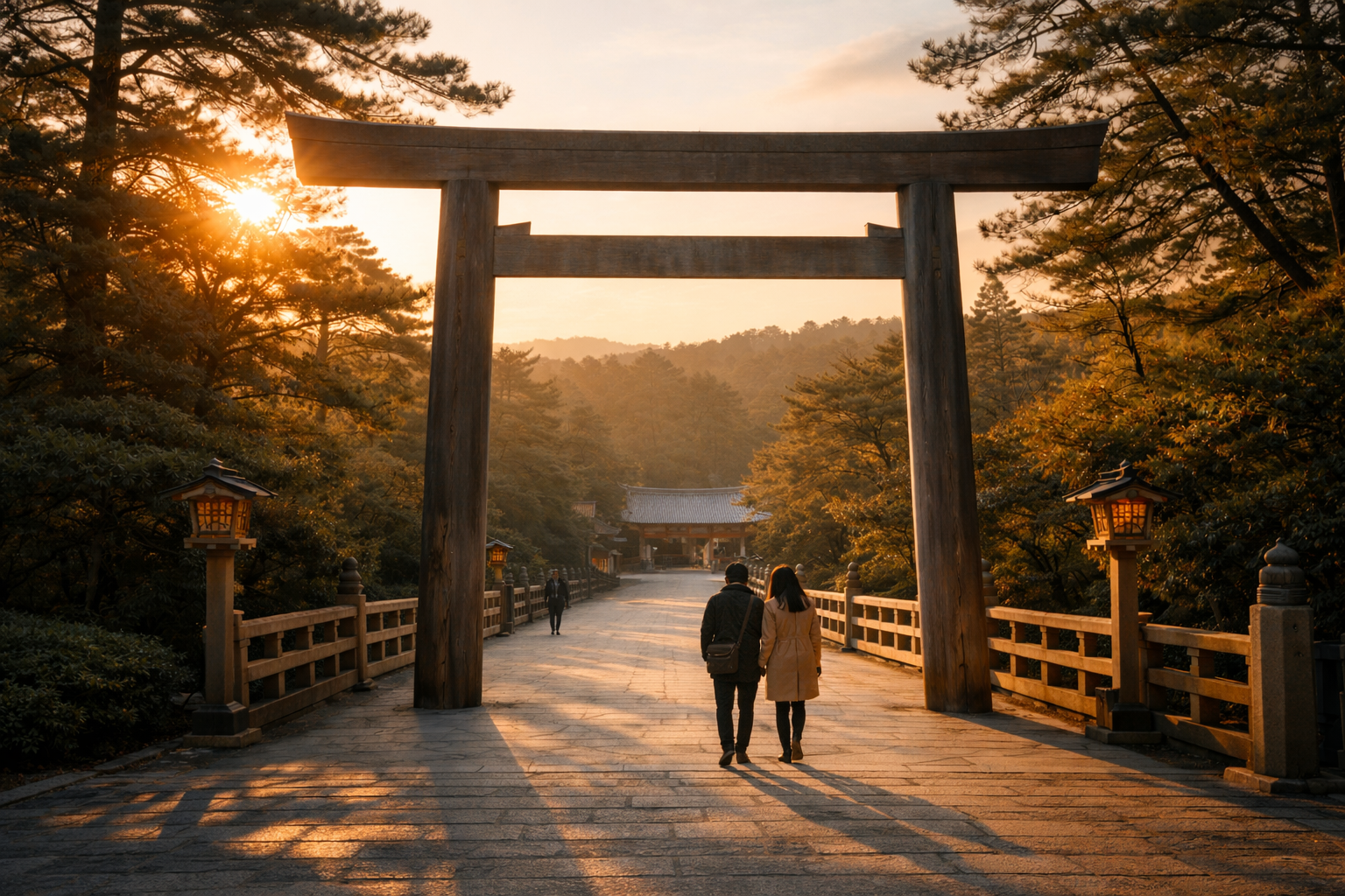 冬の伊勢は朝夕に冷えます。境内は風が通りやすいので、コートに加えてマフラーや手袋など“首・手”を守る小物があると体感がかなり変わります。