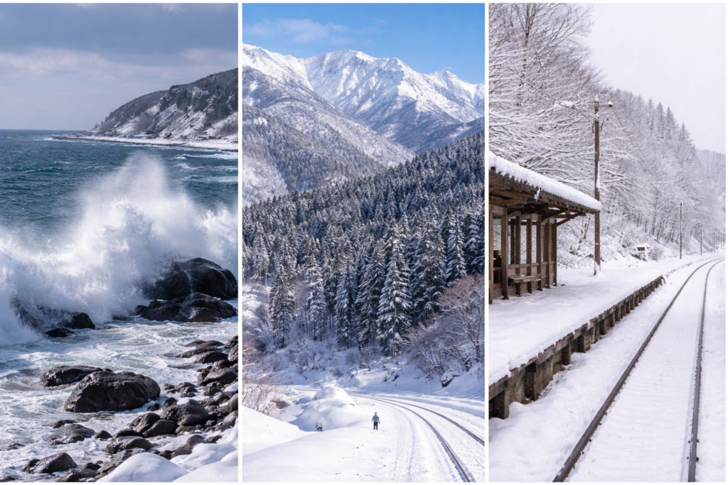 線路はときに海岸線すれすれまで寄り添い、ときに雪深い山あいへ分け入っていく。