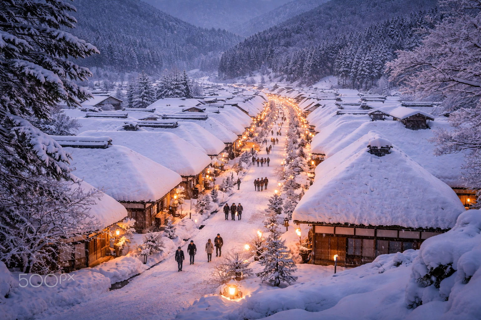 白に包まれた茅葺きの道を歩くその瞬間、あなたはただの観光客ではなくなる。
