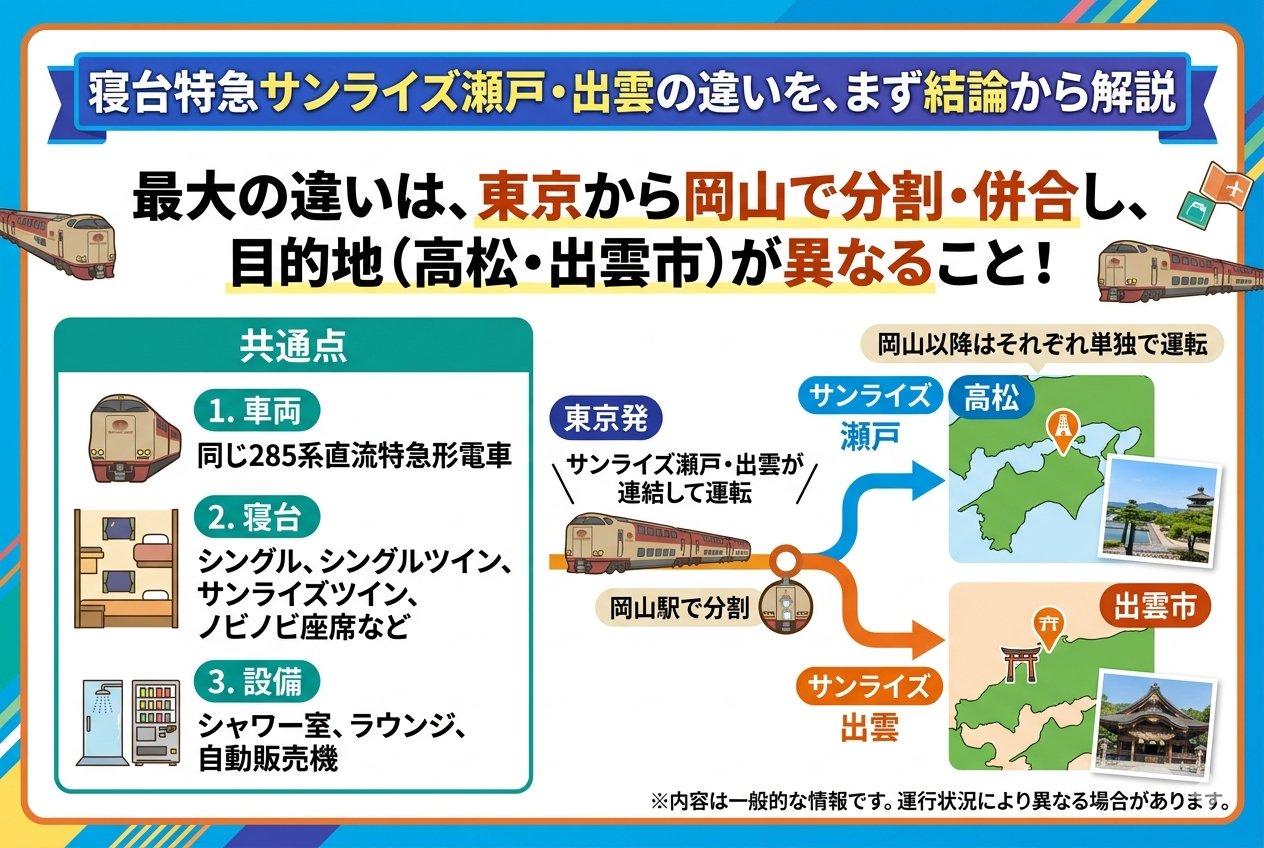 寝台特急サンライズ瀬戸・出雲の違いを、まず結論から解説