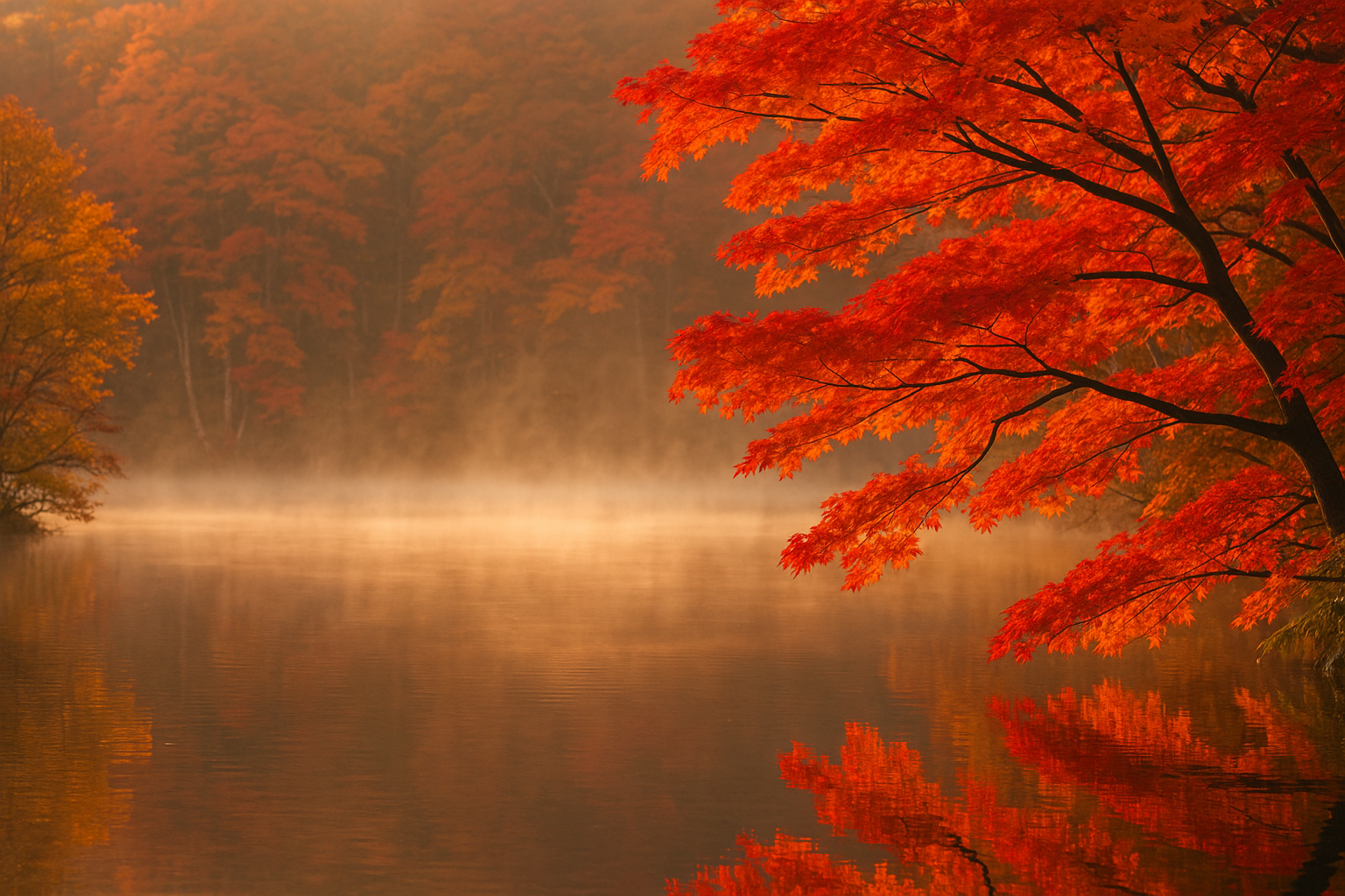 日中の光と朝夕の冷え込みが、紅葉を最も鮮やかに仕上げる。
