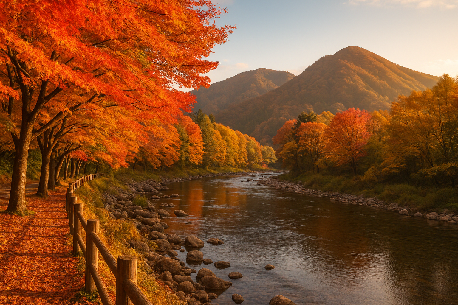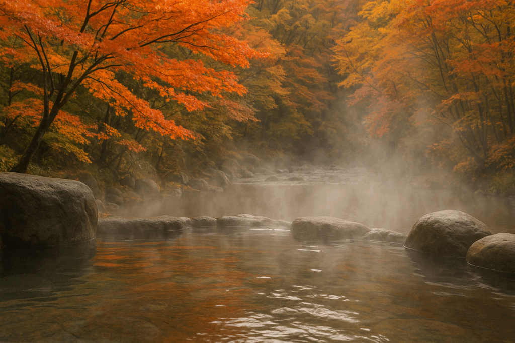 「紅葉の谷に抱かれて湯に溶けるとき、世界の音がやさしく遠のいていった。」