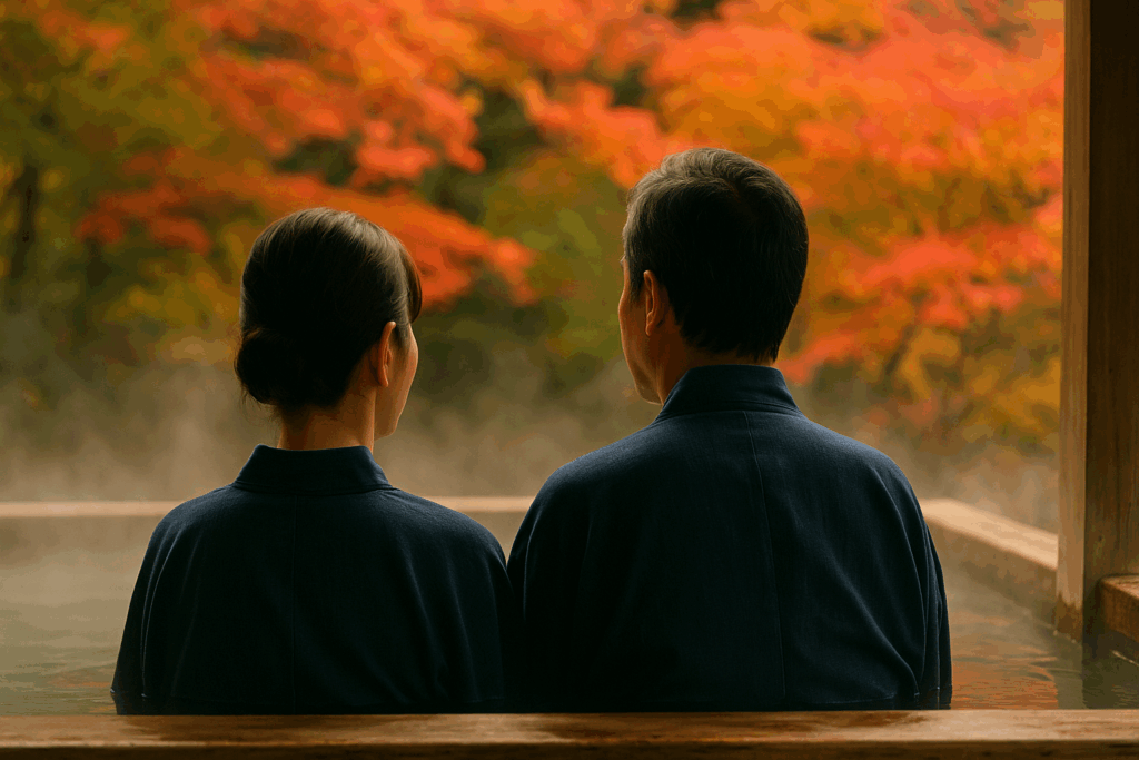 「湯気の向こうに見えた紅葉が、まるで時間の欠片のようだった。」