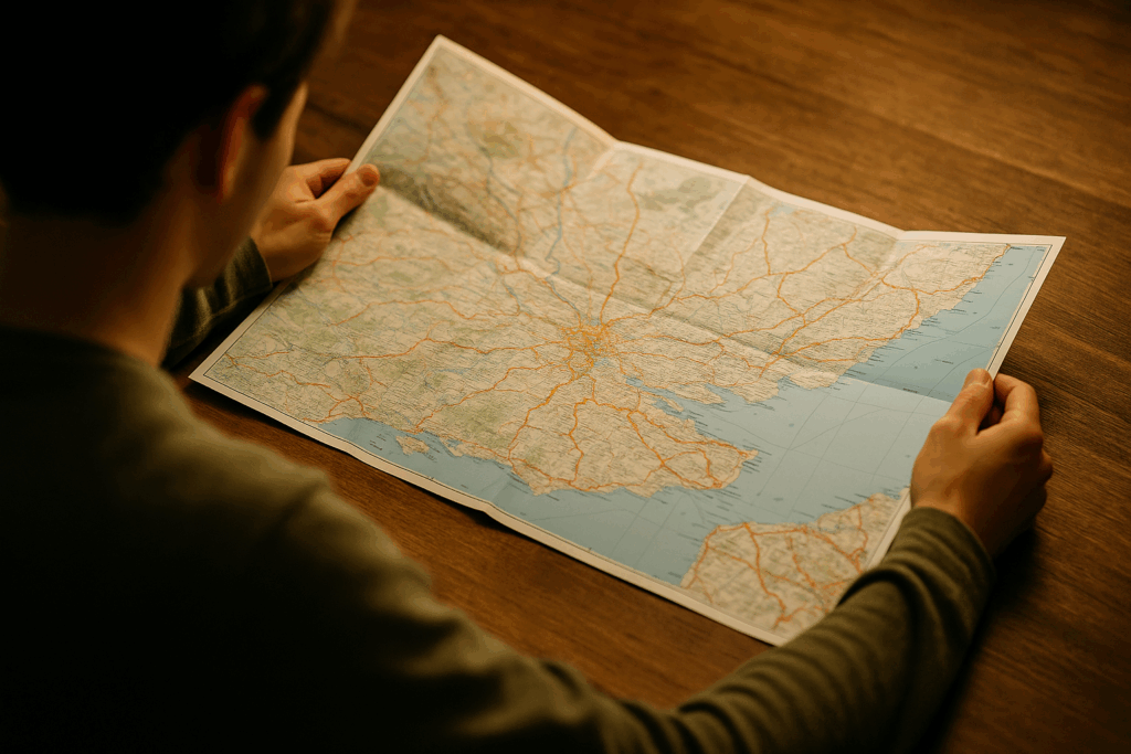 地図を広げる瞬間、心の奥で小さな鼓動が高鳴る。