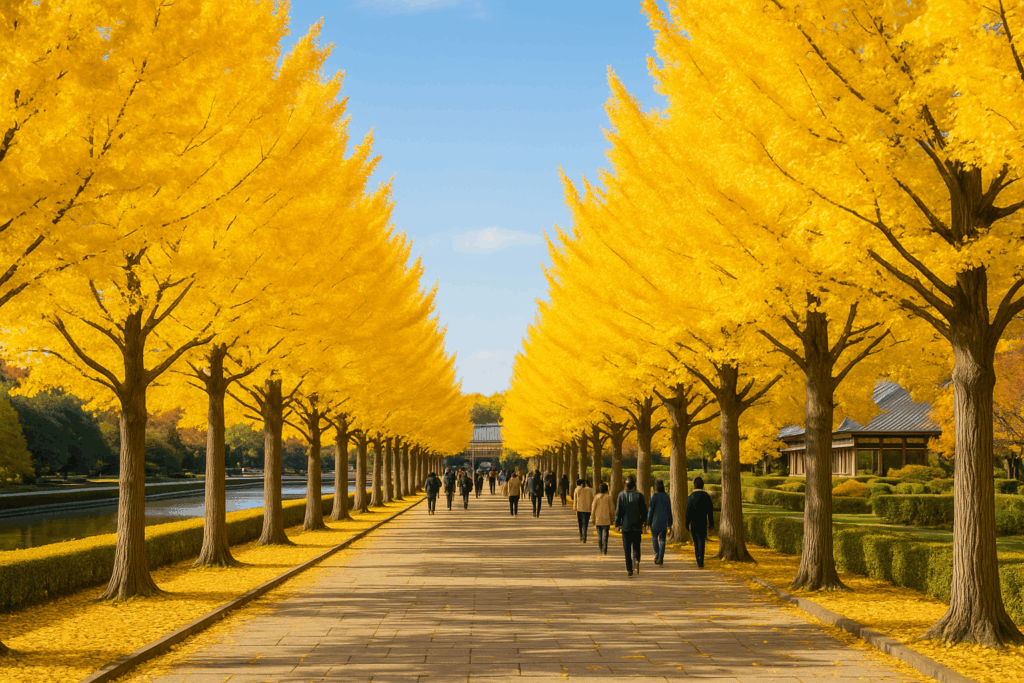 秋が深まるころ、広大な園内には“黄金の風”がそっと吹き始める。