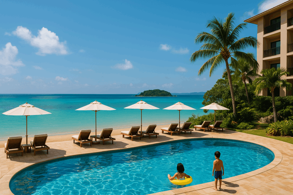 沖縄リゾートのすごいところは、到着して数分で子どものテンションが最高潮になることだ。